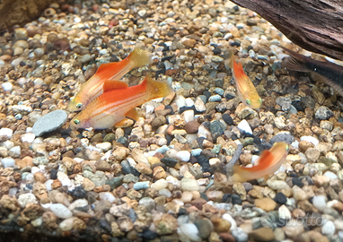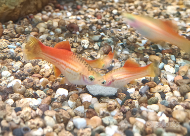 Sono pesci a cui piace stare in gruppo e diventano circa 8 cm da adulti. Sono onnivori ed esplorano l'acquario da cima a fondo.