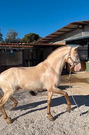 Si propone in vendita spagnolo albino con documenti di pura razza 3 anni ottimo lavoro in piano e poca alta scuola. Cavallo sanissimo e disponibile a qualsiasi prova e visita veterinaria