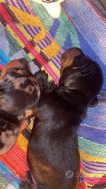 Bassotti nani 2 maschi arlecchino silver 1 femmina nera focata con macchia bianca sul petto