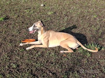 E' figlio di due whippet campioni di bellezza e con pedigree visibile. ha un anno e mezzo e sarebbe felice di accoppiarsi per diventare papà.