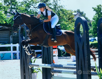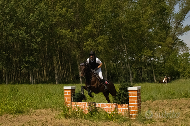 castrone, nove anni, h 165 , super affidabile ,molto generoso ed equilibrato ,attualmente montato da ragazzi con brevetto in lezione e concorsi di salto ostacoli fino alle 100 , ottimo in cross.