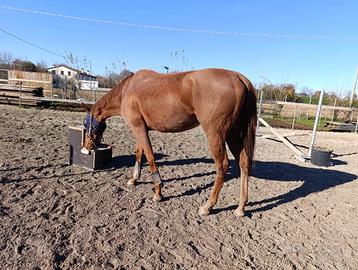 femmina psi di 4 anni bravissima, già pronta per percorsi 80/90, sanissima, prezzo modico (2500€) in quanto è nata senza un occhio, ma con certificato del veterinario che ciò non compromette l'attività agonistica in quanto abituata a vederci con un solo occhio e non ha paura di nulla. 160 al garrese ca.