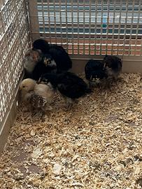 Vendo pulcini di due settimane 4 pulcini oliver (5€ l'uno) 2 pulcini Brahma Isabella (10€ l'uno) 1 pulcino brahma millefiori (10€ l'uno) 1 pulcino whiadotte 8 euro
