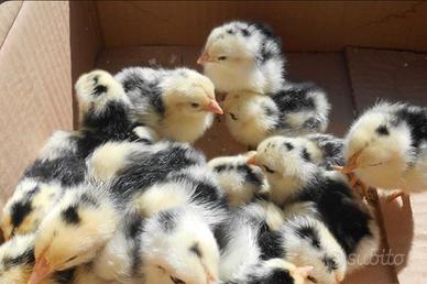 Vendo pulcini sani e selezionati, sia razze pure che ovaiole. Razze disponibili: o Cocincina nana (varie colorazioni) o Marans (uova scure) o Galline ovaiole uova azzurre o Livornesi Disponibili anche pulcini da selezione propria: o Ottima produzione di uova o Colori diversi ? Animali sani e robusti ? Selezione orientata alla produzione ? Ideali sia per uova che per allevamento familiare Prezzi a partire da 5 € (variabili in base a razza e disponibilità). Contattami per info e disponibilità.