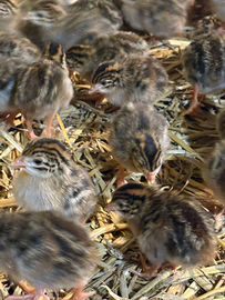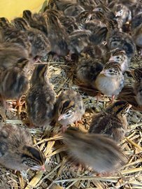 Pulcini rosso pesante collo nudo e bianco pesante .e pulcini di faraona