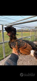 Buongiorno a tutti , allevamento amatoriale "due polli e un pollaio" propone pulcini di gallina padovana camoscio chiaro, camoscio scuro, tricolore e oro orlato nero. In foto rappresentato il nostro gallo in compagnia delle sue galline.