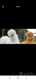 Vendo 7 Pulcini di razza Moroseta di 7 mesi e 2 pulcini di 2 mesi . Di colore tra Caramello , Nero e Bianco . Tra galli e Galline . Possibilità di visionarli senza impegno. 25€ l uno/ a