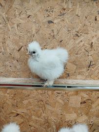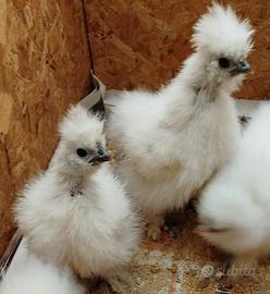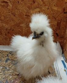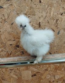 Vendo pulcini di moroseta silkie bianco perla e splash. Hanno due mesi e sono stati vaccinati alla nascita. Sono molto docili e ben nutriti, piumaggio setoso e lucido.