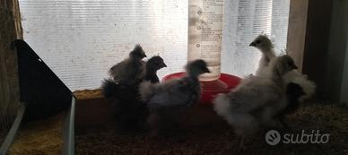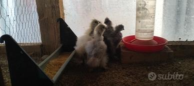 Vendesi 5 pulcini ornamentali di moroseta puri nati da chioccie, circa un mese, astenersi perditempo, non spedisco e vendo in blocco, 45€ tutti.