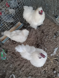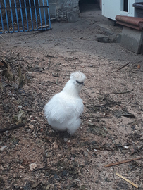 Disponibili pulcini ornamentali razza gallina moroseta allevate in purezza, colore bianco, Tel. 3479457082