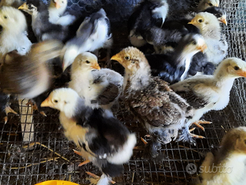 Pulcinotti di 1/2 mesi razza brahma varie colorazioni (sparviero, perniciato, nero, picchiettato, betulla, quaglia). € 15. Disponibili anche adulti riproduttori € 60