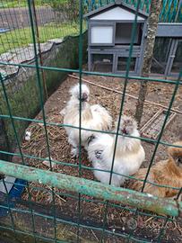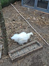 Pulcino bianco di appena 3 mesi e galletto bianco nero di moroseta 9 mesi,vendo 20 cad.
