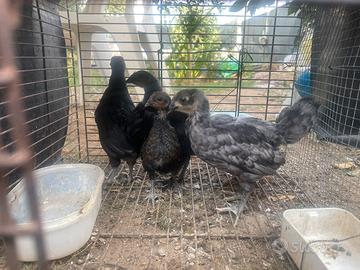 Vendesi una 20ina di pulcinotti, incroci di gallina isa brown e gallo Australorp, 2 morosette grigio perla, 1 bianca, 1 tutta colorata, 1 cocincina nana nera picchiettata bianca