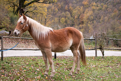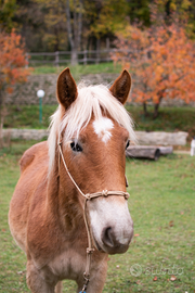 Vive al pascolo con altri cavalli ma abituata anche al box.