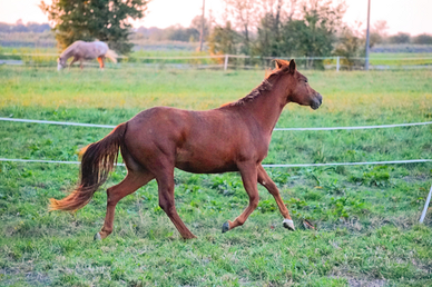 La puledra è di carattere freddo e molto buono, si fa maneggiare, gira alla corda, da i piedi e sale sul trailer. Verrà iniziata con una doma estremamente basica "dolce", così da non interferire con un eventuale addestramento più approfondito su manovre e discipline specifiche.