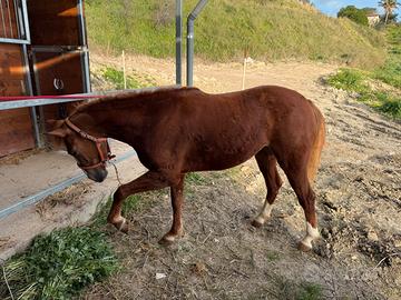 Vendo bellissima puledra incrocio Quarter di 2 anni e mezzo inizio doma... la puledra é bravissima anche con i bambini... circa 150 al garrese