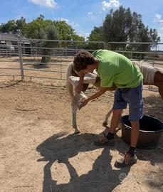 E abituata a cani, galline, bambini, maniscalco, trattore, va a passegiata con corda, piace di pulire il pelo e lavorare nel tondino. Una cavalla svegliata e veloce con grande potenziale.