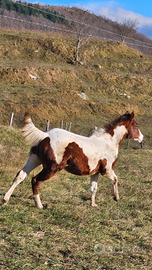?Sun Brave? Puledra paint horse nata a metà maggio 2025,baia tobiana,con documento americano in arrivo.. Svezzata,maneggiata,abituata alla capezza,a stare al pascolo e entrare nel box,indole buona... Zona Toscana-Liguria
