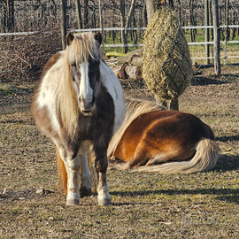 Abituata libera in ampio paddock con capannina , attualmente con un altro puledro.