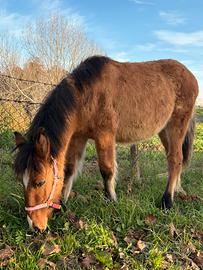 Puledra di 9 mesi, incrocio Avelignese/Cavallo di montagna, puledra robusta, futura cavalla di 1.55/60 al garrese, già sverminata, in ottima salute, tenuta benissimo in stalla con mangime e abituata al pascolo, porta la cavezza, è di indole molto buona, si fa prendere anche le zampe, per altre foto o video contattatemi al 3883830665 su whatsapp.