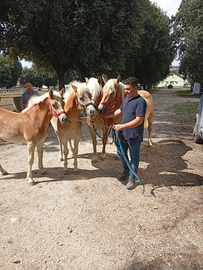 Dispongo di diverse puledre di razza haflinger con documenti di razza tutte marchiate con stella alpina cresciute al Pascolo allo stato semibrado abituate alla recinzione elettrica tutte le puledre portano la capezza appiombi perfetti puledre in perfetto stato di salute qualsiasi visita medica