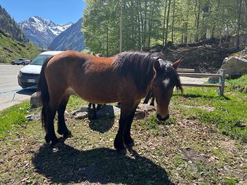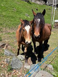 Vendo puledro di 1 anno DPA, con documenti e Coggin's test. Figlio di due cavalli agricoli da basto (padre palomino e madre baia visibili in foto). Docile e collaborativo, futura altezza al garrese circa 145-150 cm al garrese.