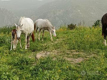 Vendo o cambio puledro di un anno incrocio Madre Andalusia padre Paint, con cavalla tipo avelignese domata per bambini.