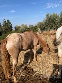 E un cavallo di buon carattere, tenuto in stato brado fuori sui pascoli. Non è addestrato, su richiesto posso anche farlo.
