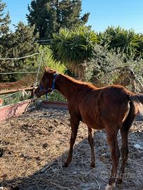 Splendido puledro Arabo di 7 mesi. Morfologia corretta e grande presenza atletica, ottimo per un futuro atleta da endurance o trekking. Carattere equilibrato e già ben gestito. Puledro di facile gestione, cammina tranquillamente alla corda, da i piedi di cui è già stata fatta una prima lieve pareggitura, non morde e non scalcia. Sta tranquillamente in recinto con filo elettrificato. La richiesta è di 1000€