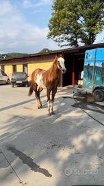 Splendido puledro sauro overo, nato il 10 febbraio 2024, già alto 1.55 al garrese, con documento americano. Conformazione corretta, ottima struttura e presenza elegante.