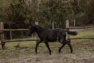 Il puledro ha 7 mesi, è già incavezzato e abituato alla manipolazione.