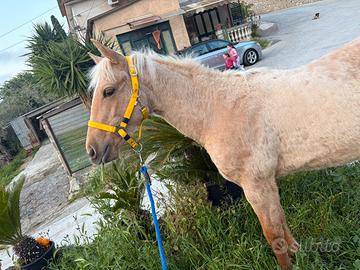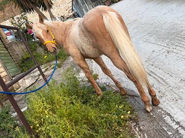 Vendo puledro di 12 mesi palomino con coda e criniera bianca figlio di cavalla Palomina quorter e padre Paint (NO DOCUMENTI) bravo con la cavezza non scalcia e non morde,carattere molto freddo,accetto scambio permuta con differenza a vostro o a mio favore con puledra femmina o cavalla per maggiori info contattate 3334084647