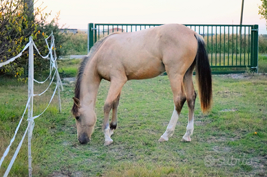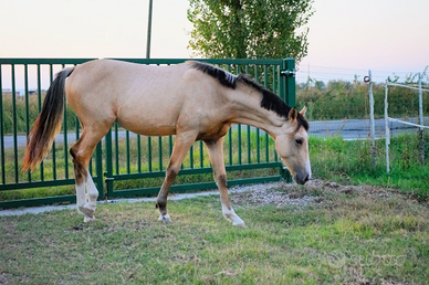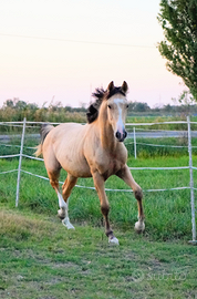 Nato il 18/05/2024, foto aggiornate a metà ottobre 2025. Color isabella, con lista lunga, due balze posteriori, coda e criniera bicolor.