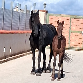 Vendo puledro figlio di cavallo p.r. e madre frisone il puledro a 7 mesi