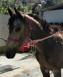 Disponibile puledro intero di un anno e mezzo, incrocio Frisone e andaluso, dal manto Buckskin, criniera e coda molto folte. Gira alla corda e si fa maneggiare tranquillamente, sarà un ottimo cavallo da trekking e da Dressage in quanto molto elegante e armonioso nei movimenti. Per maggiori informazioni non esitate a chiedere.