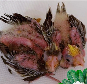 Pulli calopsite, calopsite adulte allevate a mano