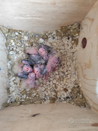 Pulli di calopsite da imbecco disponibili dal 18 giorno . Sono nati 1/3/5 gennaio 2026. In foto i genitori. Euro 30 cadauno. No perditempo.