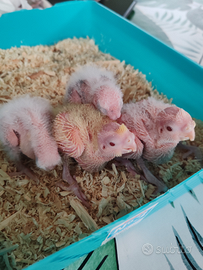 Bellissimi pulli di calopsite con occhi rossi.
