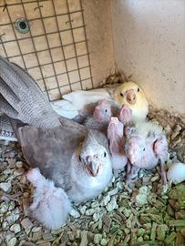 Disponibili pulli di calopsite pezzati faccia pastello e pezzati estremi faccia bianca 60€ faccia pastello e 50€ faccia bianca.genitori di ottima selezione