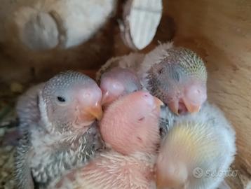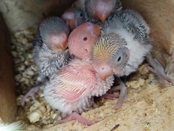 Cedo pulli di cocorita e pulli di cocorita maggiorati ( incrocio tra cocorite inglesi e cocorite normali) da allevare a mano, età 20/21 giorni.