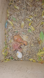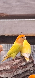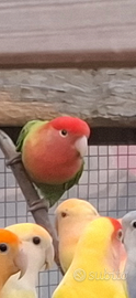 Pulli di inseparabile da allevare a mano. Figli di opalino verde testa rossa maschio e opalino lutino testa arancio femmina Foto del 2/2/26 30 euro l'uno