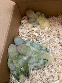 Pulli di inseparabili di 15 giorni pronti per essere imbeccati a mano sono 4 ancestrali