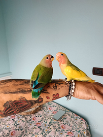 Disponibili 3 pulli di inseparabili di giorni 65 allevati a mano, più disponibile coppia di 1 anno già covato e pronta x nuova cova 30€ l'uno zona taviano lecce informazioni 3420794185