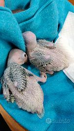 Disponibili 2 pulli di parrocchetto dal collare verde allevati a mano Hanno circa 35 giorni Sono abituati con l'imbecco alla siringa 150€ ciascuno