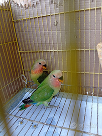Pulli di inseparabili molto belli se ne prendi uno 40€ se ne prendi due 70€ non sono allevati a mano ma se vuoi allevarli puoi pk hanno due mesi sono docili non mordono per maggiori informazioni contattatemi su WhatsApp 3888721459 NO PERDITEMPO!!