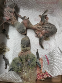 Pulli inseparabili nati tra il 24 e 25 gennaio sono 2 da genitore blu e 1 da genitore verdi opalini per allevare a mano. Si consegnano dal 14 in poi.
