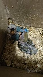 Cerchi un piccolo compagno affettuoso e vivace? ? Disponibili splendidi pulli di inseparabili, allevati con amore e attenzione. Puoi scegliere se crescerlo tu a mano per creare un legame unico, oppure per i meno esperti prenderlo già in fase di svezzamento o completamente autonomo. Perfetti per diventare pappagallini docili, giocherelloni e molto legati al proprietario I prezzi variano in base alla fase di svezzamento che si richiede. Vengono ceduti intorno i 25/30 gg con 4 imbeccate al giorno. Pulli da svezzare= 25€ coppia da svezzare= 45€ allevato a mano= 70€ i pulli verrano ceduti senza sessaggio . I genitori sono visibili in foto. Per qualsiasi info non esitate a contattarmi al seguente numero: 3455316579 !! Al fine di aumentare la visibilità: cocorite, calopsite, pyrrura, conuro del sole, parrocchetto dal collare , monaco, ara , cenerino, ecletto , amazzone , testa di prugna, lory arcobaleno.