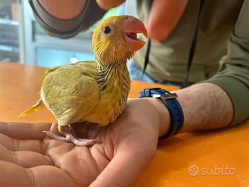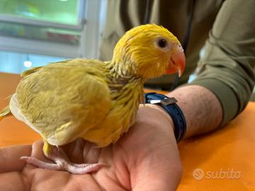 Vendo pulli di parrocchetti dal collare mutati, cioè colorazioni gialli, lutini, bianchi e snow, vengono imbeccati tre/4 volte al giorno. Carattere docile, solare e chiacchierone