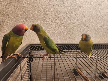 Vendo 4 pulli di parrocchetto testa di prugna (Psittacula cyanocephala) I piccoli sono allevati a mano, quindi docili Sono in ottima salute. Vivaci e ben socializzati. Cresciuti con cura e attenzione, ideali come animali da compagnia. Non vendo la coppia di parrocchetti Adesso i pappagalli hanno quasi 3 mesi Disponibile consegna in tutta la Sardegna con spese a carico dell'acquirente. Per maggiori informazioni o foto/video contattami in privato.