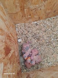 Disponibili pulli di Parrocchetti dal collare hanno 20 giorni genitori visibili in foto il maschio blu e portatore di cleartail se presi in blocco prezzo interessante per inf. 3407196366